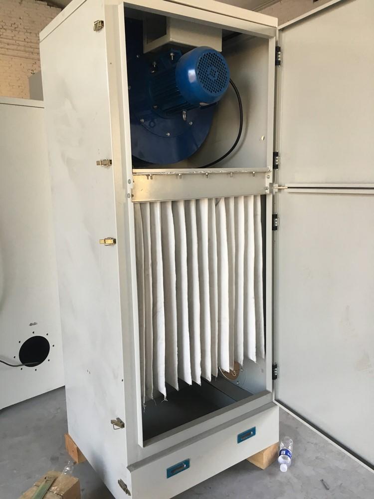 安裝前,仔細(xì)檢查設(shè)備箱體、外接電源線及插頭看是否有(因途中運輸)受損情況,有損壞應(yīng)及時修復(fù);打開檢修門,查看除塵布袋是否有脫落、受潮現(xiàn)象,如有濾袋脫落,則應(yīng)安裝牢固;如有除塵濾袋受潮現(xiàn)象,則可啟動風(fēng)機空運轉(zhuǎn),予以抽干。